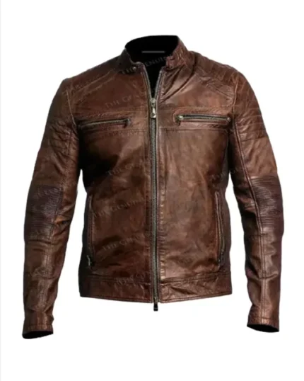 Desert Brown Waxed Biker Leather Motorbike Jacket