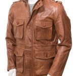 Men Slimfit Brown Strap Pocket Biker Jacket