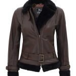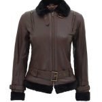 Women’s Gertrude Belted Leather Brown Shearling Jacket