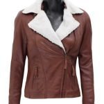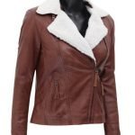 Women’s Waxed Leather Tan Brown Shearling Jacket