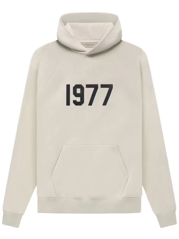 This hoodie stands out with its bold “1977” graphic print on the chest, paying homage to the year of birth of Fear of God’s founder, Jerry Lorenzo. It features an oversized fit, dropped shoulders, and rib-knit cuffs and hem for a relaxed yet structured look. The spacious kangaroo pocket and adjustable hood add both style and practicality.