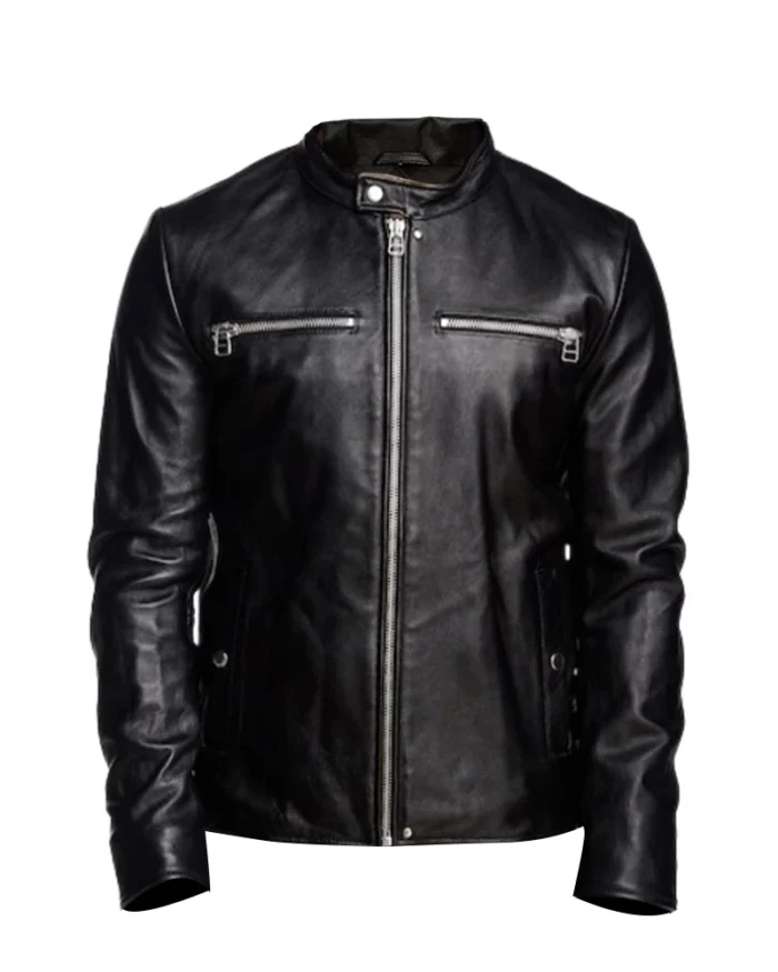 Equipped with a front zipper closure, multiple spacious zipper pockets, and a stand-up collar with hood attachment, this jacket is built for both style and practicality. Its timeless black color makes it easy to pair with any outfit, from casual everyday wear to bold biker ensembles.