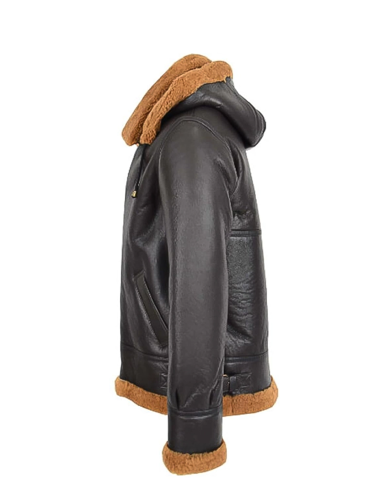 The Men’s Brown B3 Bomber Jacket with Hood combines the rugged charm of vintage aviation style with modern functionality. Inspired by the legendary B3 bomber jackets worn by WWII pilots, this piece is crafted from 100% genuine sheepskin leather and lined with luxurious shearling fur for superior warmth and comfort.