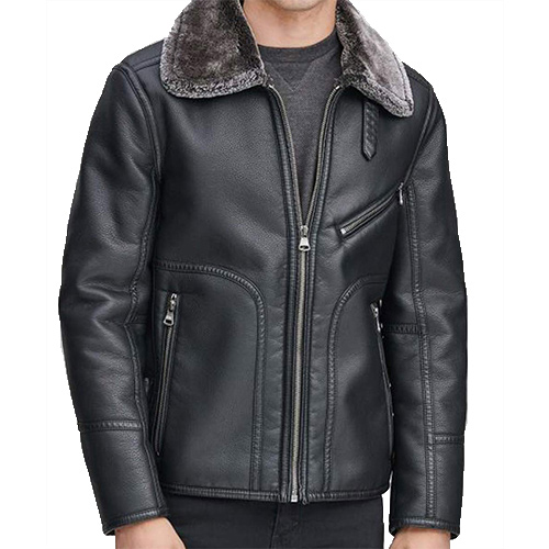 Men’s Black Leather Fur Jacket