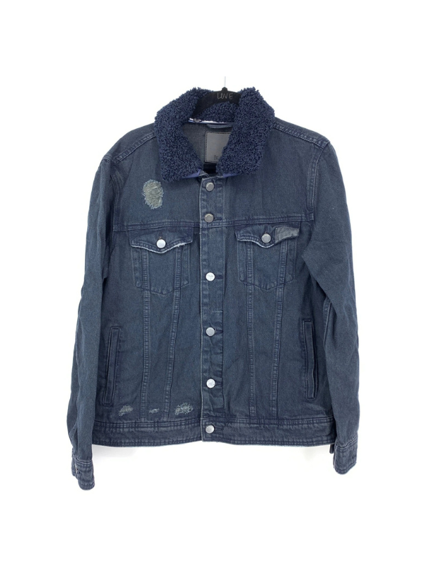 Men’s Navy Blue Sherpa Collar Denim Jacket