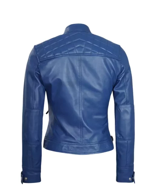 Women Blue Biker Leather Jacket